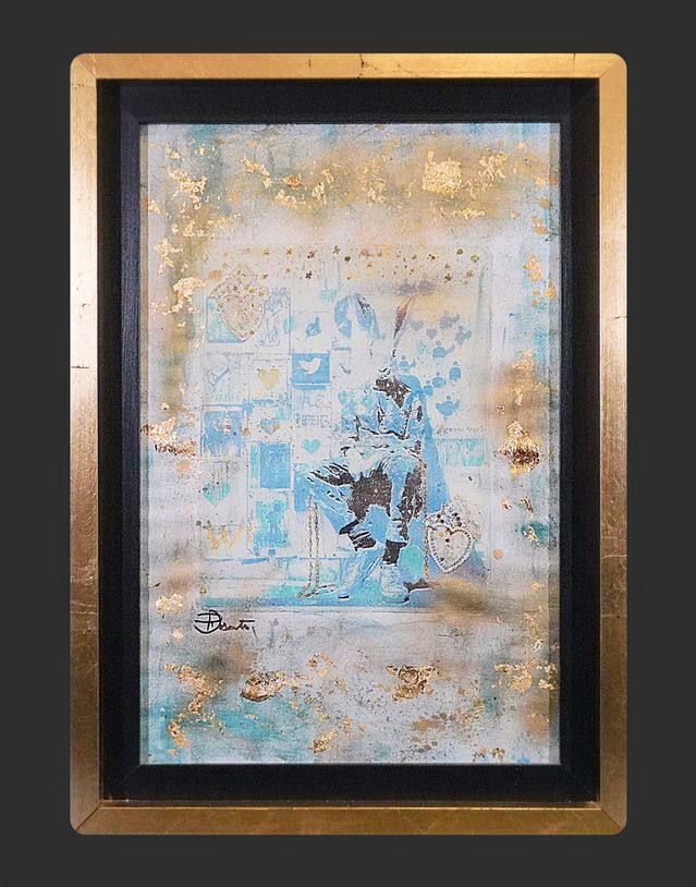 Marco: Caja veneciana. Madera con hoja de oro. Cristal antirreflejante.