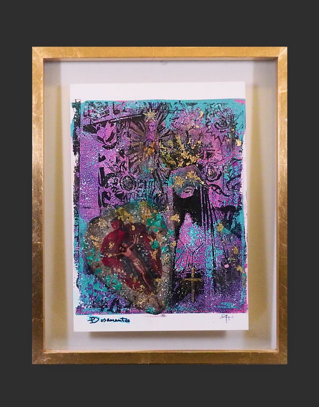 Marco: Entre 2 cristales antirreflejantes. Madera con hoja de oro.