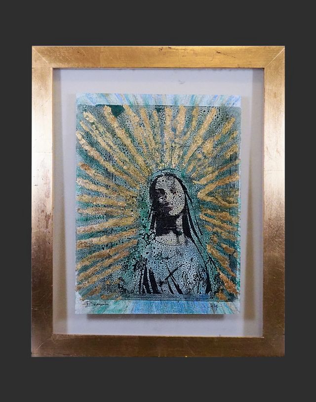 Técnica: Monotipia. Transferencia sobre papel con hoja de oro.